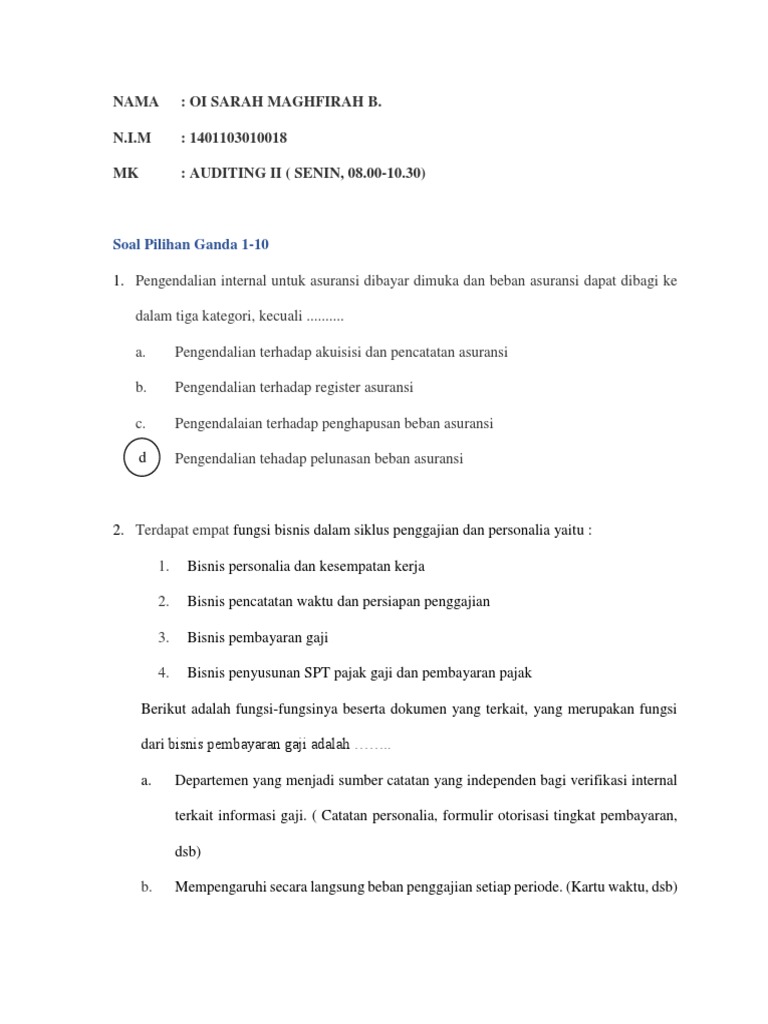 Tugas Soal Dan Jawaban Audit Ii Individu Pdf from imgv2-2-f.scribdassets.com View 2_kartu_soal_pilihan_ganda_c.docx from ac auditing at smk negeri 2 pekalongan. Sultan ageng tirtoyoso melakukan perlawanan. Kalimat tersebut merupakan definisi dari. Pokok soal harus dirumuskan dengan singkat, jelas, dan tegas. Latihan soal pilihan ganda bab internet semester 2 1. Sebelum lanjut ke soal skb dengan kurikulum 2013 (k13) edisi. Sedangkan piutang non usaha adalah piutang yg timbul dari transaksi selain penjualan barang dan jasa kepada pihak luar seperti piutang kepada. Berilah tanda pada huruf a, b, c, atau d pada jawaban yang 48.