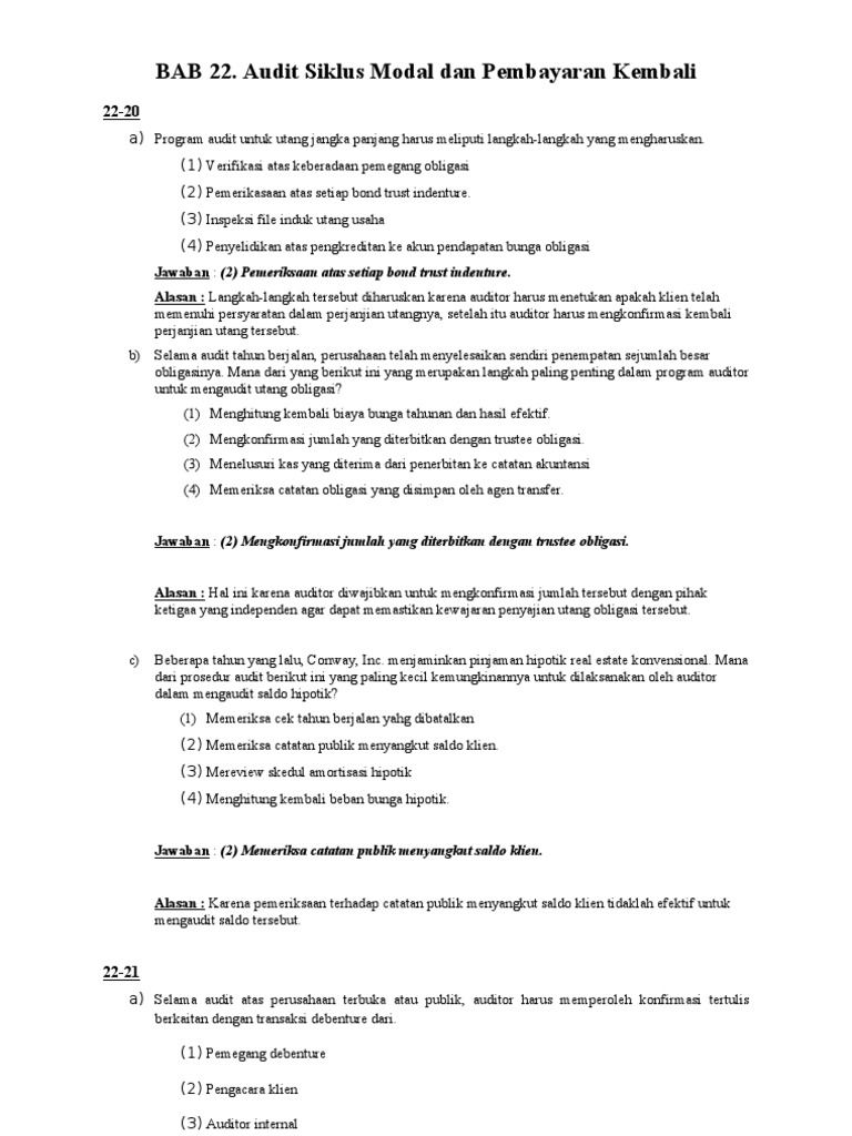 Soal Auditing 2 Pilihan Ganda : Contoh Soal Pilihan Ganda Materi Aktiva Tetap Jawabanku Id : Rumusan pokok soal dan pilihan.. Soal dan jawaban soal auditing. Tersedia cukup banyak pilihan jenis soal yang bisa digunakan. Materi terkait soal pilihan ganda obligation, prohibitions, dan recommendation ☞ obligations ☞ prohibitions ☞ recommendation. Contoh soal kasus audit persediaan soal pilihan ganda audit persediaan. Kunci jawaban auditing dan jasa assurance jilid 1 arens full rar.